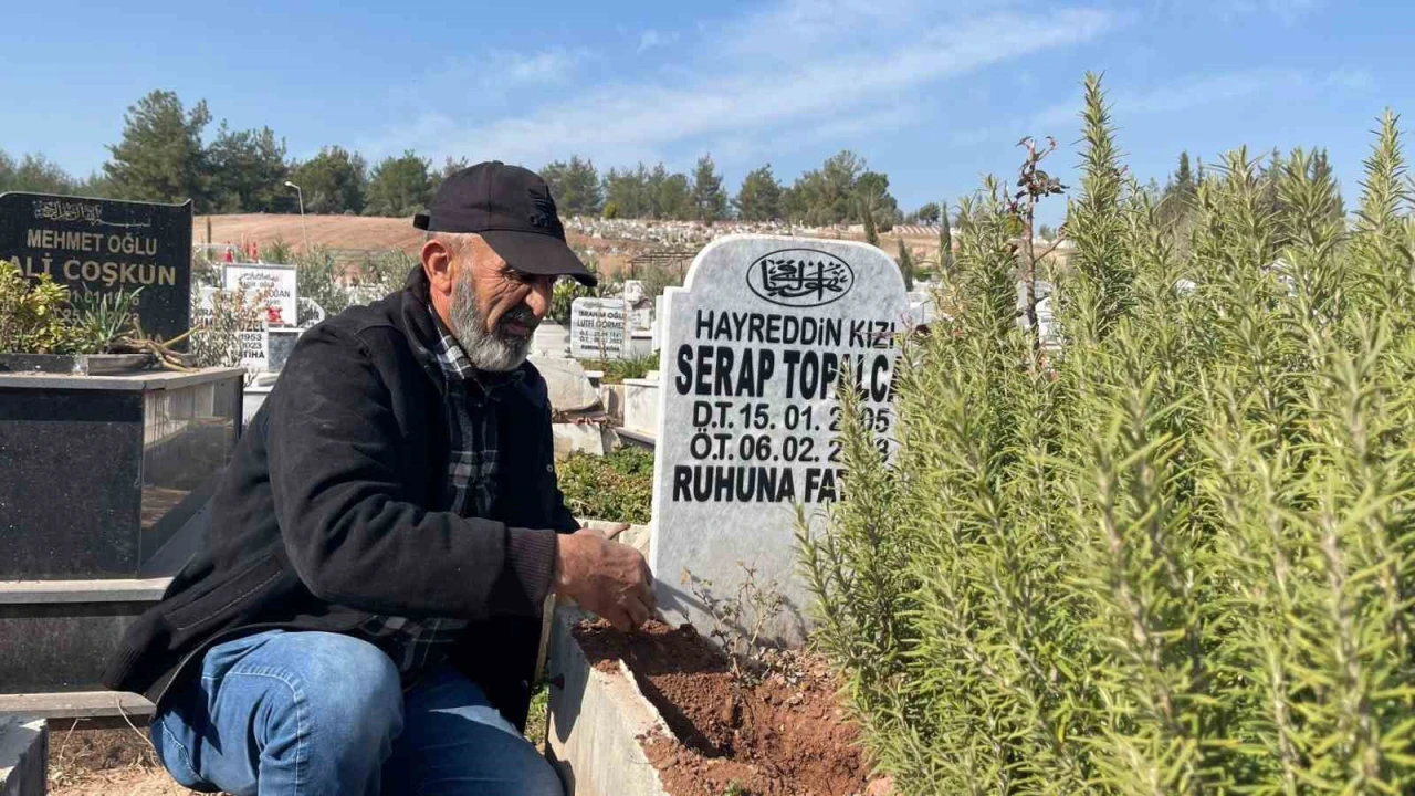 6 Şubat depremlerinde eşi Semira Topalca (49) ve kızı Serap Topalca (18) kaybeden Hayrettin Topalca, "Deprem günü ben Bolu odunda kesiminde çalışıyordum. Eşimle ve kızımla deprem günü görüntülü konuştum ama gece uyuyamadım içimde bir huzursuzluk vardı. Sabaha karşı haber aldık deprem olmuş evim yıkılmış eşim ve kızım içerde kalmış oğlumda evdeydi o ama son anda yaralı bir şekilde kurtulmuş. O gün gelecektik gelemedik bayağı çaba harcadık yollar kapalıydı. 2 gün yolda kaldık sonra toprağa vermeyi erteledik geldikten sonra toprağa verdik" diye konuştu.
