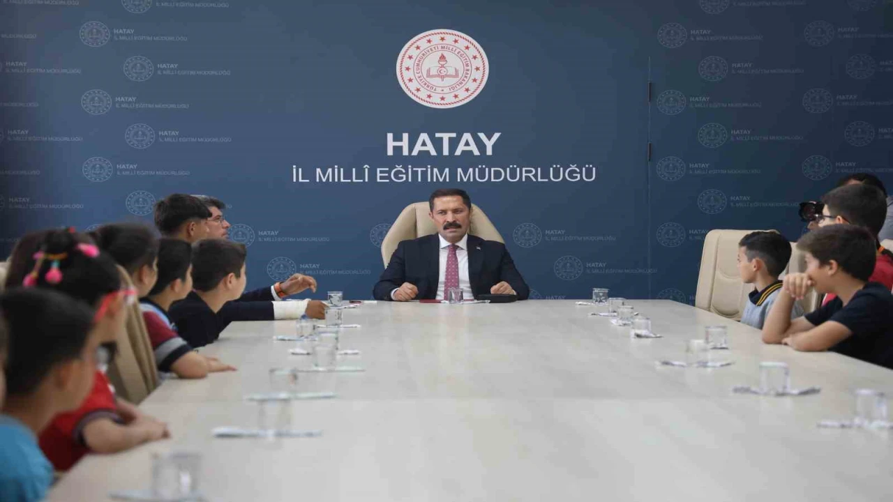 Kahramanmaraş merkezli depremlerde en çok hasarı alan Hatay’da bin 604 eğitim kurumunun yaklaşık 3’te biri kullanılamaz hale geldi. Hatay Valiliği ve hayırseverlerin katkılarıyla 161 eğitim kurumunun inşaatı tamamlanırken, bazı okullarda güçlendirme çalışmaları devam ediyor. Bölgede eğitim kalitesinin ve öğrencilerin başarı seviyelerinin artması için yürütülen çalışmalar sonuç veriyor. İlköğretim ve ortaöğretim öğrencilerini kapsayan bursluluk sınavında Hatay’da 16 öğrenci 500 tam puan almayı başarırken, 2 öğrenci de Türkiye derecesi elde etti. Hatay Valisi Mustafa Masatlı, 18 başarılı öğrenci ve velileriyle İl Milli Eğitim Müdürlüğü’nde bir araya geldi. Öğrencilerle sohbet eden Vali Masatlı, başarılı öğrencilere plaket ve hediye takdiminde bulundu.