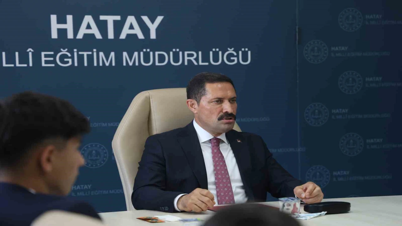 DEPREMİN YARALARININ SARILDIĞI HATAY’DA, BURSLULUK SINAVINDAN 500 TAM PUAN ALAN 16 ÖĞRENCİYLE BİR ARAYA GELEN HATAY VALİSİ MUSTAFA MASATLI, PLAKET VE HEDİYE TAKDİMİNDE BULUNDU. BURSLULUK SINAVINDAN 500 TAM PUAN ALAN ÖĞRENCİ ALPER DAYAN, BÜYÜNCE AYNI ALPER GEZERAVCI GİBİ ALPER DALYAN OLARAK AY’A ÇIKMAK İSTEDİĞİNİ SÖYLEDİ.