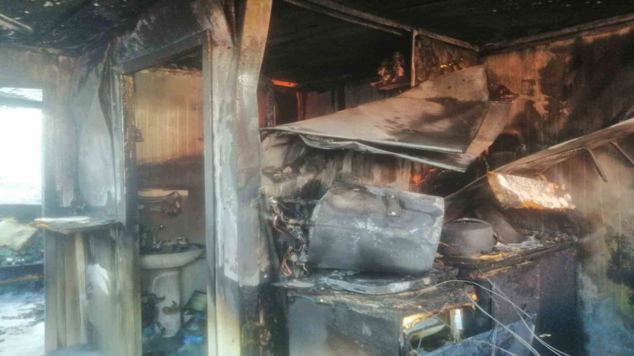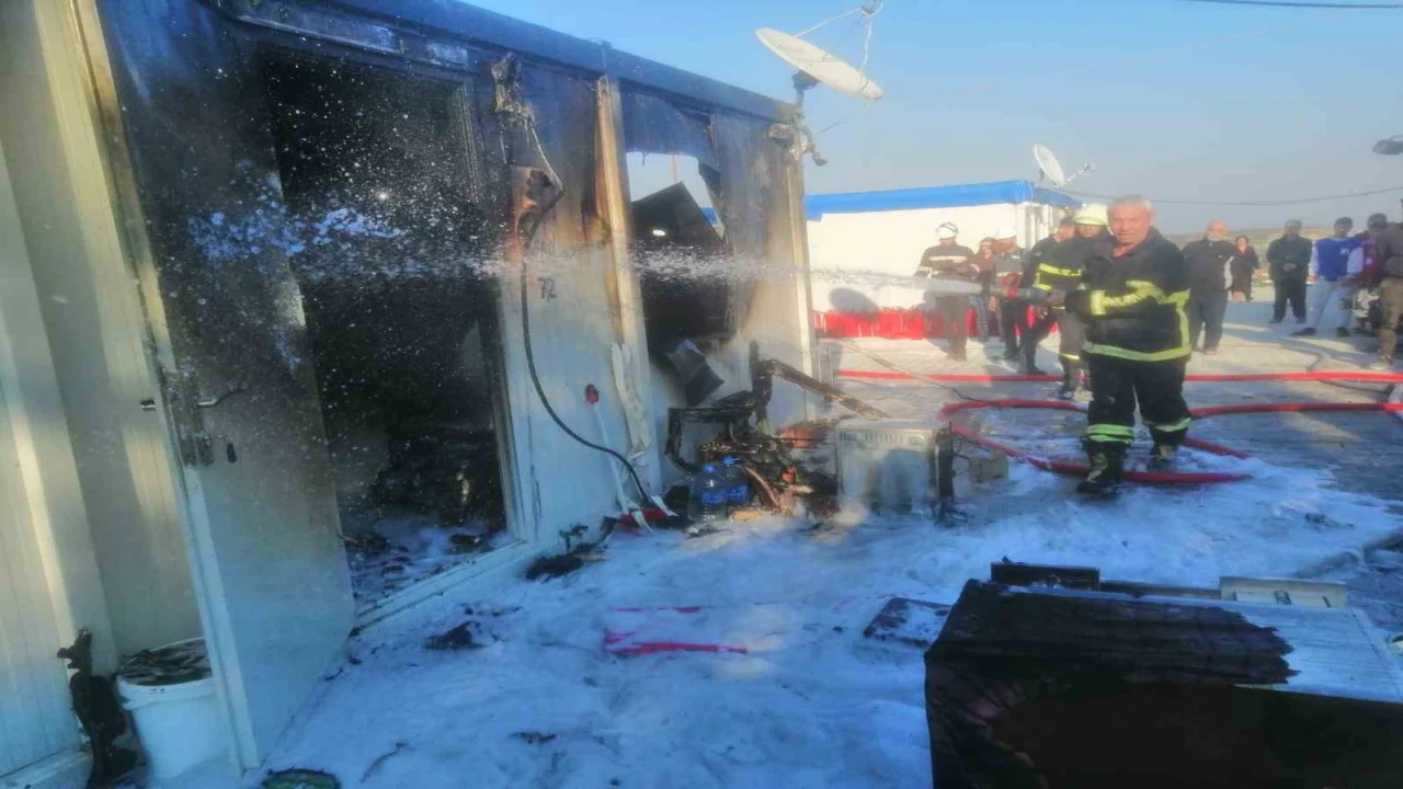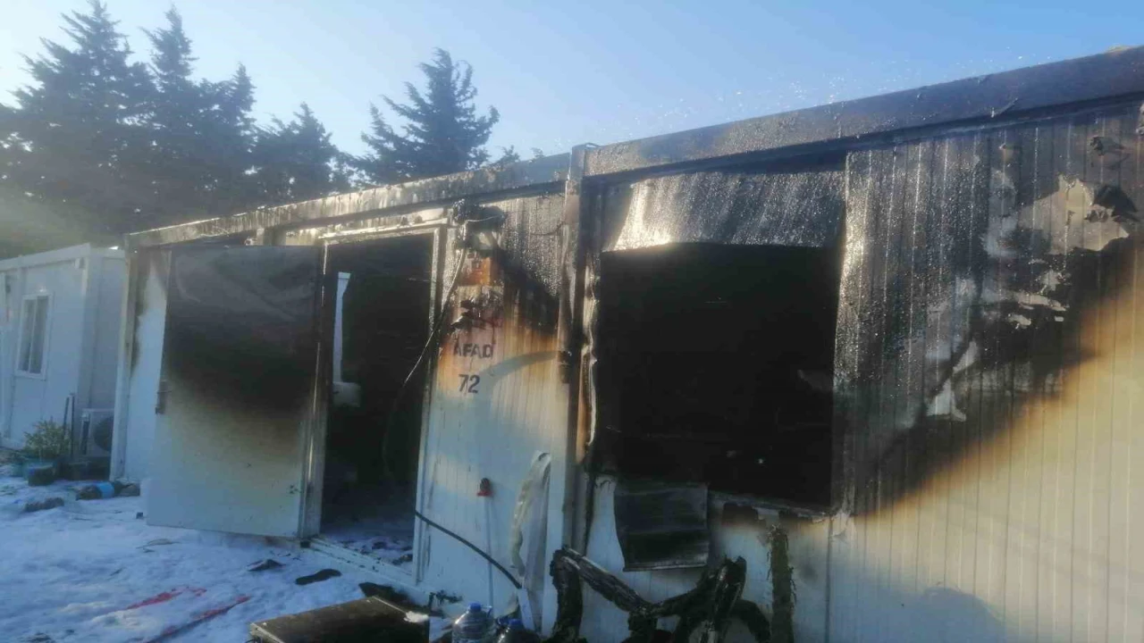 Depremzede ailenin konteyneri alevlere teslim oldu