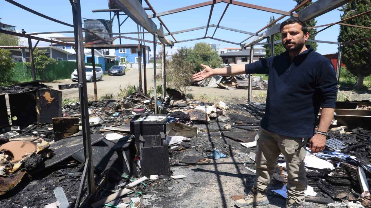 Konteynerlerin dakikalar içerisinde alevlere teslim olduğunu anlatan Ali Karaçay, "Yangın öğlen saatlerinde elektrik kontağından çıktı. Yangın başladığında 8 dakika sonra alevler çepeçevre her yeri sardı. Kuzenim ve ailesi yaşıyordu. Yangında her şeyi yandı. Yangında; beyaz eşyaları, yatakları ve kıyafetleri yandı. Depremde evleri yıkılmıştı ve son anda onları kurtarmıştık.