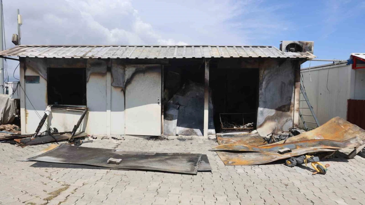 Çıkan yangından dolayı konteyner kullanılamaz hale geldi. Konteynerde yaşayan depremzede vatandaşlarsa korku dolu anlar yaşadılar.