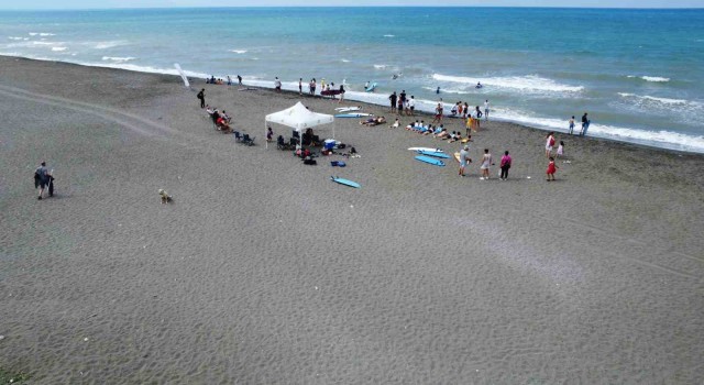 Sörf Eğitmeni Deniz Toprak, Akdeniz’e kıyısı olan Samandağ’da yılın her döneminde sörf yapılabildiğine dikkat çekerek çocukların kısa sürede öğrendikleri sörf sporunda başarılar elde etmeye başladıklarını söyleyerek, “Samandağ’ına geldim, ve inanılmaz dalgalar olduğunu gördüm. Sonra düşündüm acaba bu ne sıklıkta Metrolojinden tarihi dataya, baktım çok sık, rüzgar oluyor ve bu rüzgarlardan dalga oluşuyor. Demek ki sene boyunca sörf yapılabilir dedim. Buranın gençleri böyle bir şey ister mi acaba diye düşüldükten sonra duyuruya çıktık. 2023 yılı Mayıs ayında Hızır Türbesi’nin önündeyim sörf yapmak isteyen beni bulun diye bir paylaşım yaptım ve birkaç tane genç arkadaşımız bu duyuruya cevap verdi. Hızır Türbesi’nin önünde buluştuk. İlk sörf eğitimlerini aldılar sudan çıkmak istemediler çok sevdiler sörfü ve daha sonra velileri ile konuştuk o zamanlar okullar kapalıydı biz bu çocuklara götürmek istiyoruz. Ordudaki sörf merkezimize çocukları götürdük, çok sıkı bir eğitimi aldılar. Bir anda bu çocuklar hem sörf öğretmeye, hem de sörf sporunda çok güzel başarılara elde etmeye başladılar. Türkiye şampiyonasında derece yaptılar. Bizde dedik o zaman bu iki çocuğumuz gibi biz, yüzlere, binlere öğrenci çıkartabiliriz çünkü burada dalga var. Samandağ’da her gün sörf yapılabilir” dedi.