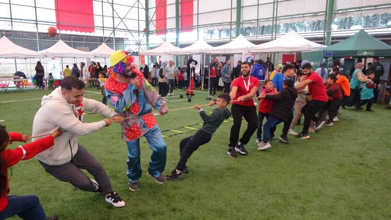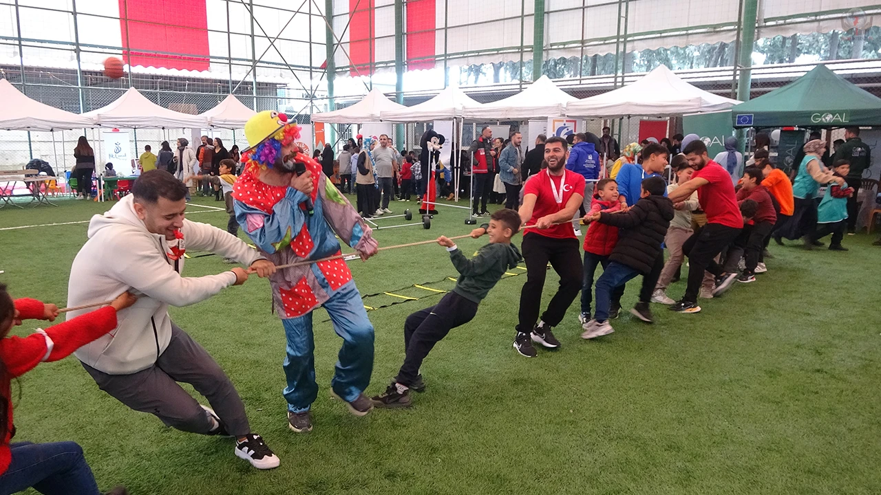 Kahramanmaraş merkezli depremlerde ağır hasar gören Hatay'da asrın felaketinin yaraları sarılmaya devam ediyor. Hatay Valiliği koordinesinde kentin ihya ve inşa çalışmaları sürerken, afetten etkilenen çocuklar da unutulmuyor. Depremzede çocuklar, Dünya Çocuk Hakları Günü dolayısıyla Hatay Valiliği tarafından düzenlenen şenlikte doyasıya eğlendi. Boyama, spor, el işi ve çeşitli faaliyetlerle zaman geçiren çocuklara çeşitli ikramlarda da bulunuldu.
