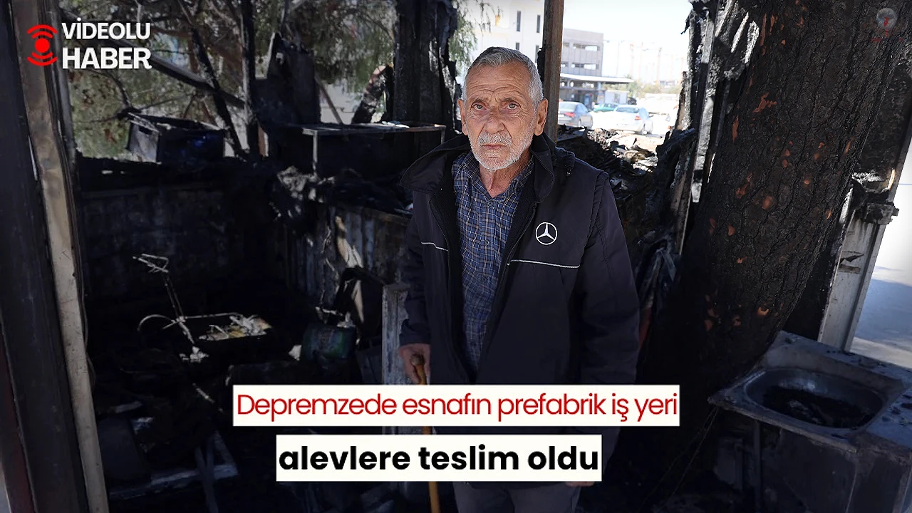 Depremzede esnafın prefabrik iş yeri alevlere teslim oldu