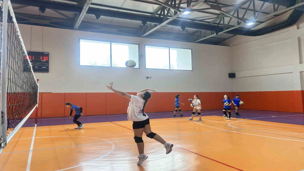 Depremzede küçük kızlar filenin sultanları olma yolunda ter döküyorlar