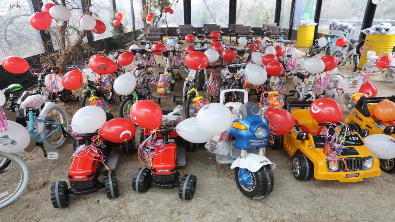 Hatay’da yaşayan 200 öksüz ve yetim depremzede çocuğa hayırseverler tarafından akülü araba, bisiklet, akıllı saat başta olmak üzere çeşitli hediyeler dağıtıldı.