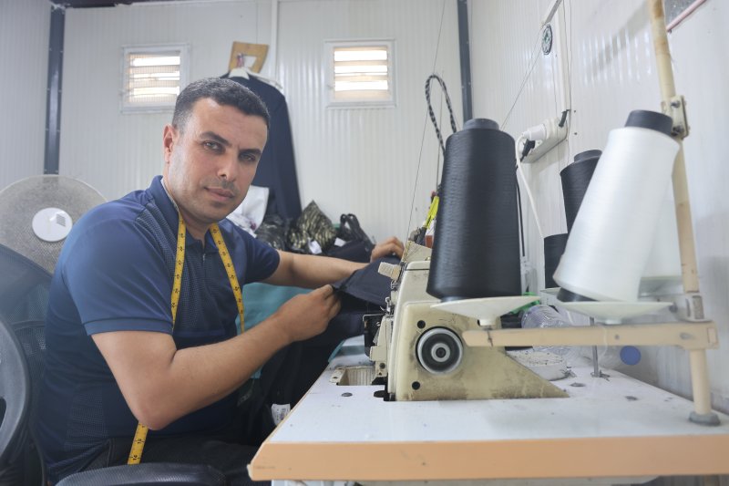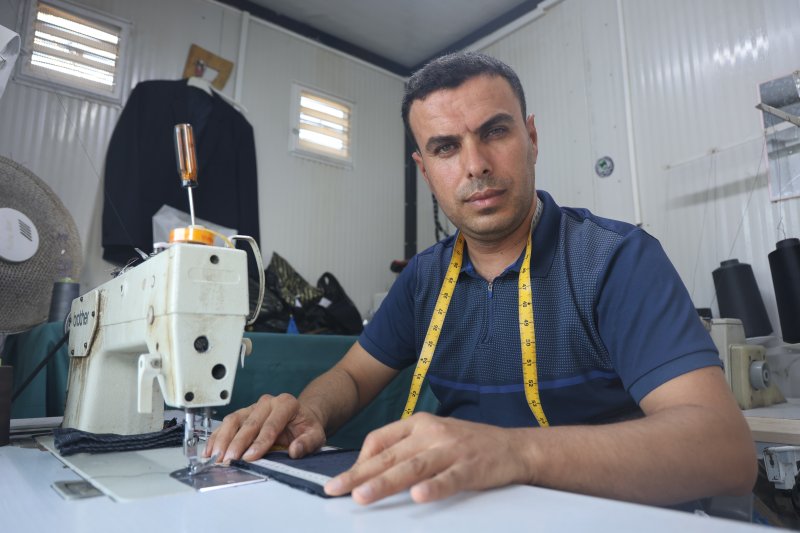 8 metrekarelik konteyner iş yerinde 28 yıllık mesleğini sürdüren Hasan Şahin, “Ben terziyim. 1998 yılından beri bu meslekle uğraşıyorum. Çekirdekten yetiştim ve çıraklıktan bu yana kadar hep bu terzi işiyle uğraştım. Yine aynı şekilde terzi işiyle uğraşıyordum. İş yerimiz yıkıldı. Şu an bu şekilde hayatımızı idame ettiriyoruz. Evimiz de yıkıldı. 6 Şubat gecesi felaketleri yaşayanlar bilir.