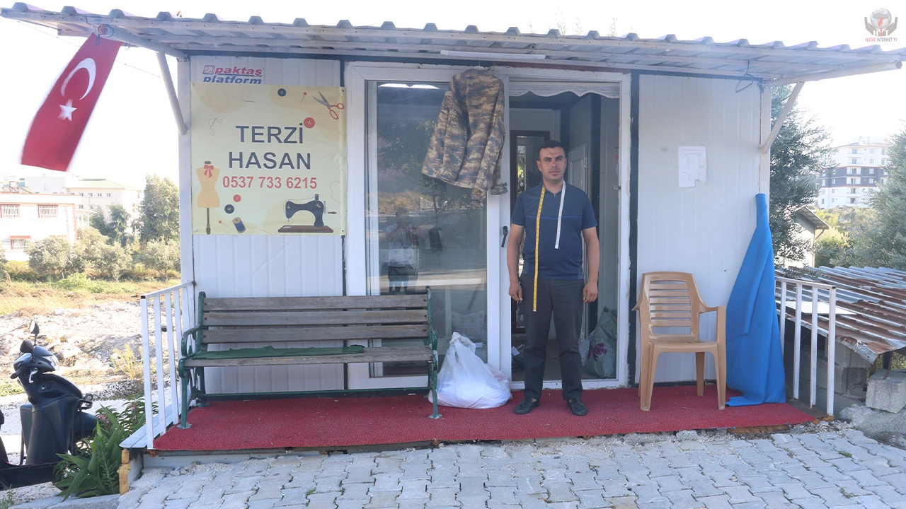 Kahramanmaraş merkezli depremlerde en çok yıkıma uğrayan Hatay'da, binlerce bina ve iş yerleri yerle bir oldu. Deprem sonrası yapılan prefabrik ve konteyner iş yerleri sayesinde esnaf, mesleğini yapmaya devam etti. Bu esnaftan biri olan Hasan Şahin, depreme Antakya ilçesi Günyazı Mahallesi'nde yakalandı. 41 yaşındaki Şahin'in iş yeri ve evi asrın felaketinde yıkıldı. Deprem öncesi iş yerinde terzilik yapan Şahin, 5 çocuğunu okutabilmek için pes etmedi ve 8 metrekarelik prefabrik iş yeri kurdu. Şahin, 1998 yılından beri sürdürdüğü mesleğini prefabrik iş yerinde sürdürerek hayat mücadelesini devam ettiriyor. Yaşama ve çalışma azmiyle takdir toplayan Şahin, hem ailesini geçindiriyor hem de evlatlarının eğitimini sürdürüyor.
