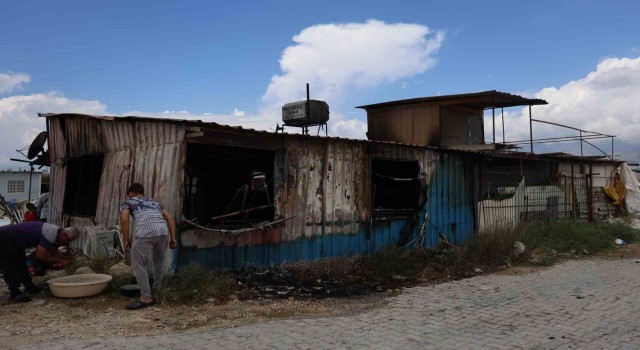 HATAY (İHA) - Hatay'da depremzede vatandaşların kullandığı prefabrik ev alev alev yanarak kullanılmaz hale geldi.