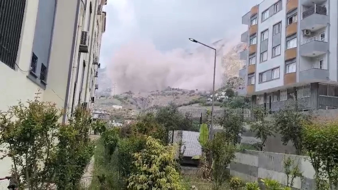 HATAY'IN İSKENDERUN İLÇESİNDE KENT MERKEZİNE YAKIN BİR NOKTADA BULUNAN TAŞ OCAĞINDA GERÇEKLEŞTİRİLEN PATLAMAYLA TOZ BULUTU HAKİM OLDU. PATLAMANIN ETKİSİYLE DEPREM OLDUĞUNU DÜŞÜNEN VATANDAŞLAR SOKAĞA DÖKÜLDÜ.