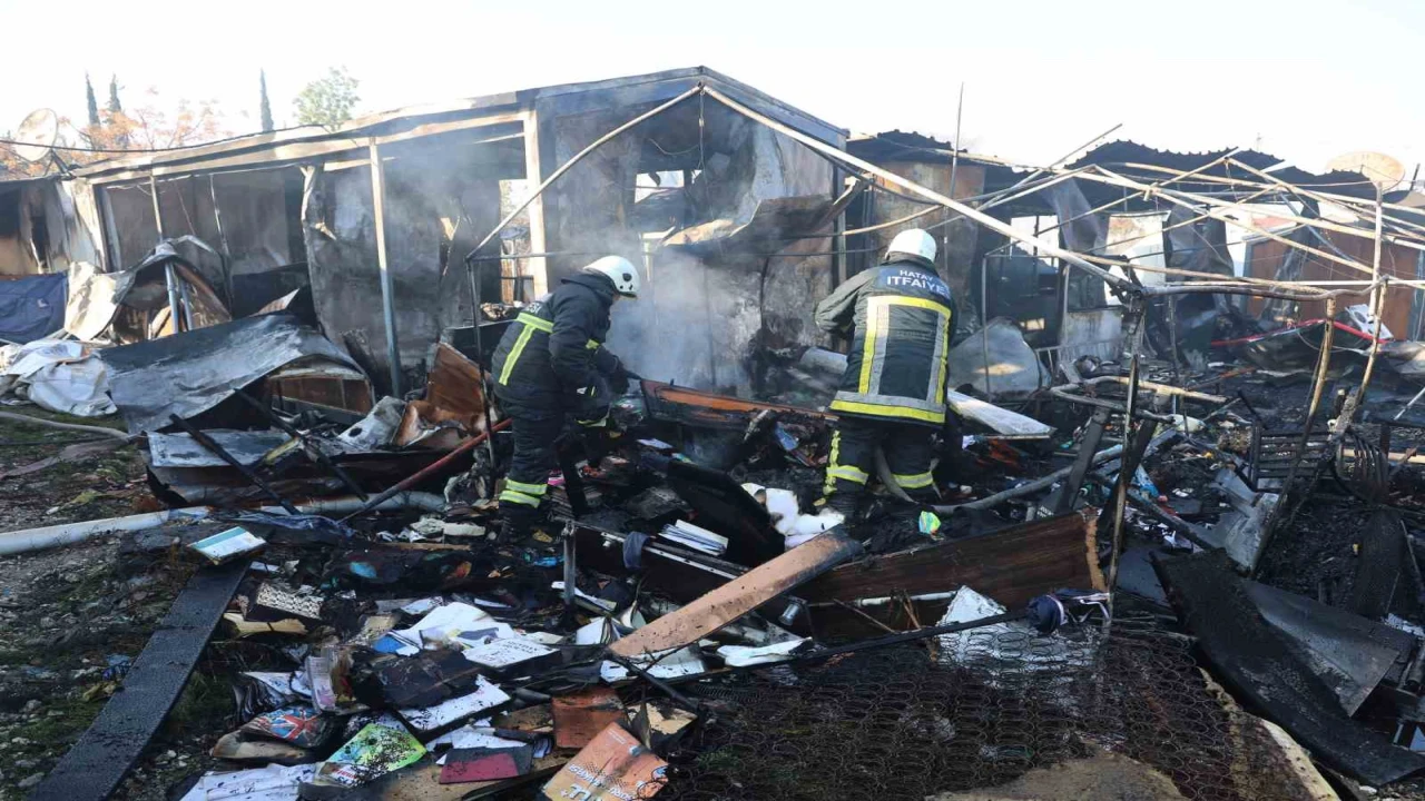 HATAY (İHA) - Hatay'ın Defne ilçesinde depremzedelerin kaldığı 4 konteyner yanarak kullanılamaz hale geldi.