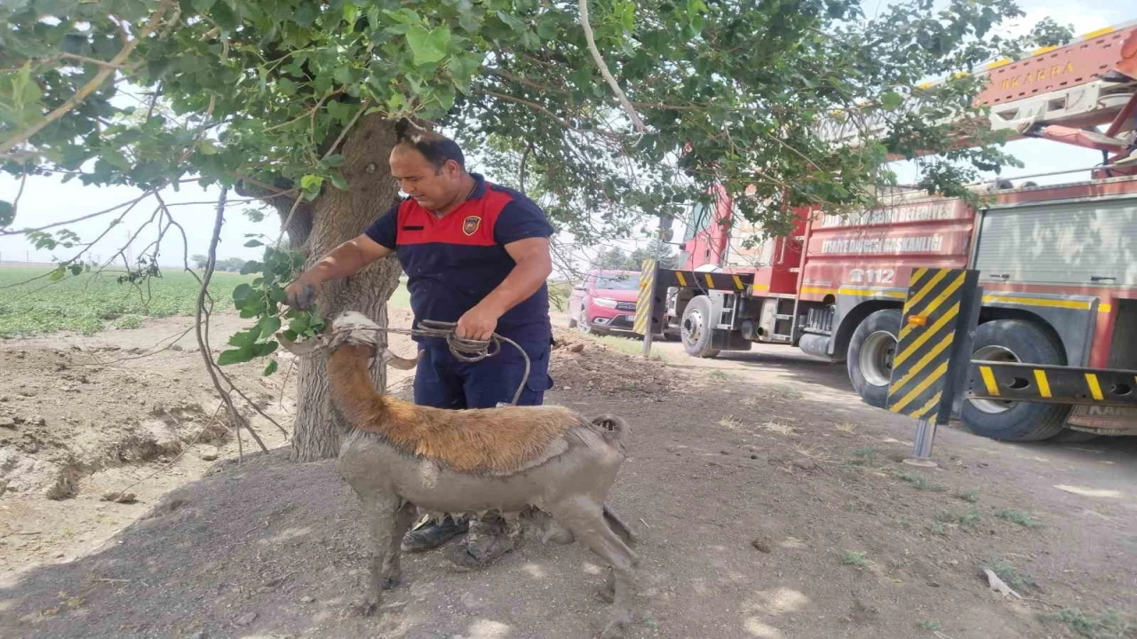 Hatay’da dereye düşerek çamur içerisinde mahsur kalan koyunu itfaiye ekipleri kurtardı.