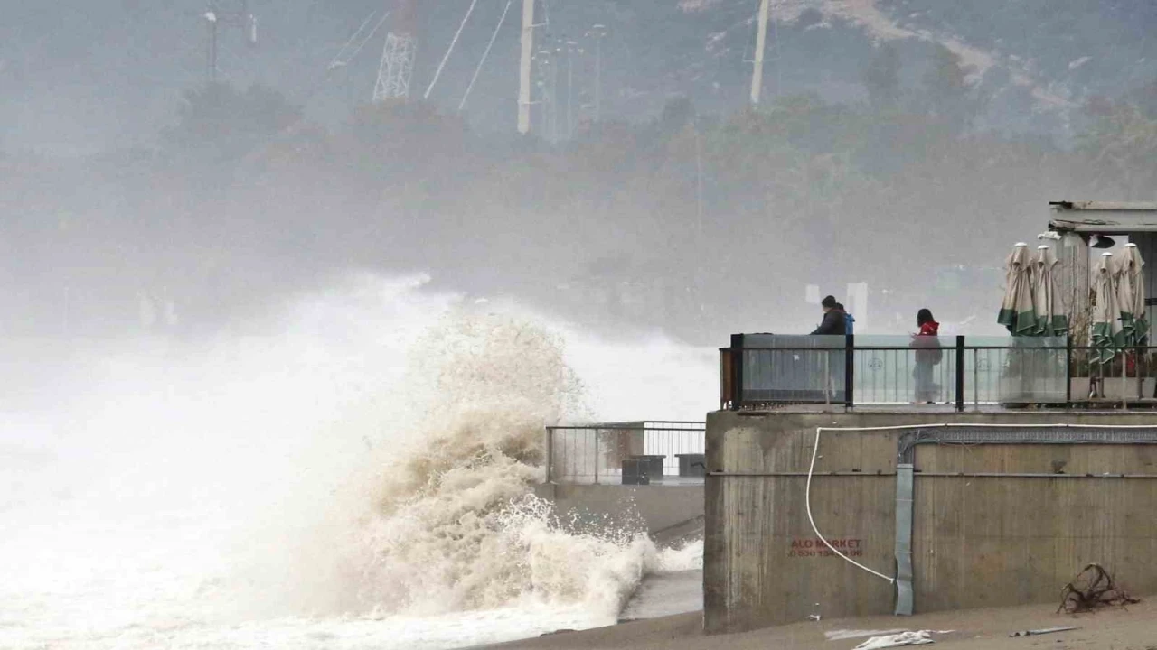 Meteoroloji 4. Bölge Müdürlüğü tarafından dün akşam ve bugün için ’sarı kod’ uyarısı yapılan turizm kenti Antalya’da, gece saatlerinde başlayan yağış ve şiddetli rüzgar hayatı olumsuz etkiledi. Sabah saatlerinde yağış etkisinin yitirirken, Konyaaltı Sahili’nde boyu yaklaşık 4 metreye kadar ulaşan dev dalgalar oluştu. Kıyı şeridine gelen vatandaşlar da, dalgaların dövdüğü sahili cep telefonlarıyla görüntüledi.
