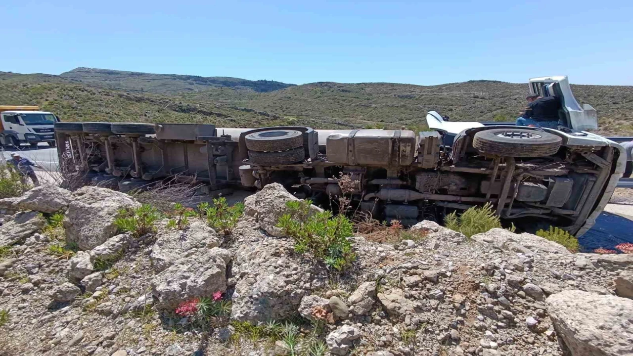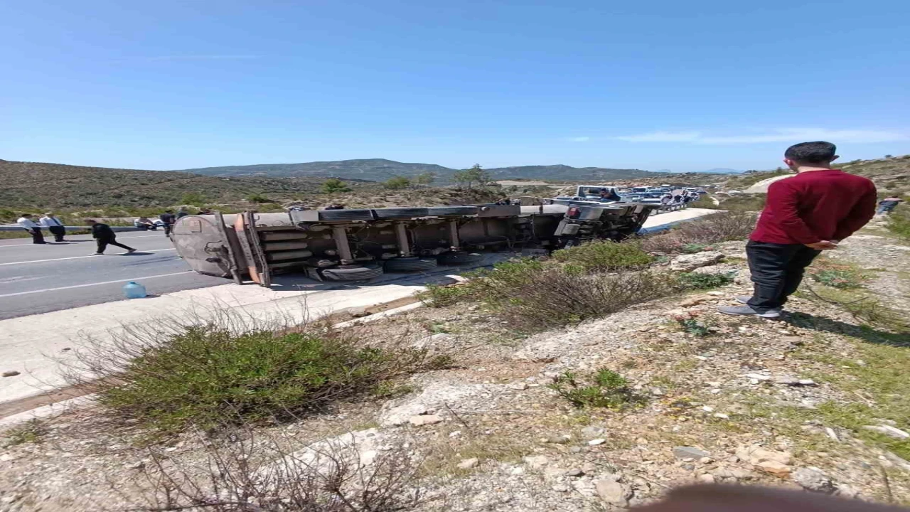 Konya-Antalya Karayolu Beydiğin Mahallesi’nde tırın devrilmesi sonucu meydana gelen kazada tırın tankerindeki zift yola saçıldı.
