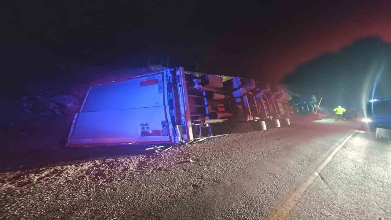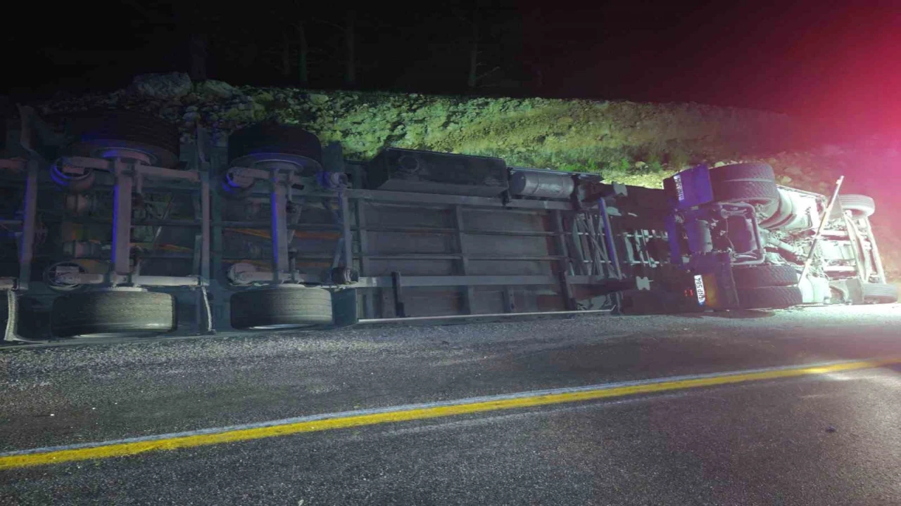 Mersin’in Mut ilçesi sınırlarında yabancı plakalı bir tır devrildi, sürücü olay yerinde hayatını kaybetti.