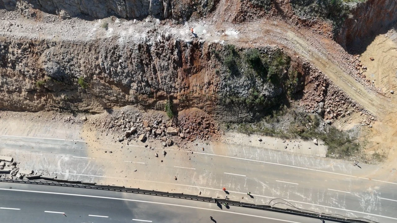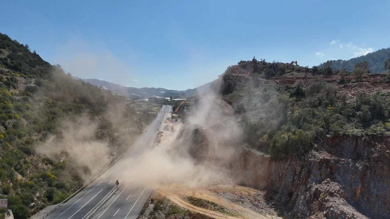 ANTALYA’NIN ALANYA İLÇESİNDE KARAYOLU YAPIMINDA KULLANILMASI PLANLANAN TAŞ VE ÇAKIL TEMİNİ SAĞLANMAK AMACIYLA İKİNCİ KEZ DAĞ DİNAMİTLE PATLATILDI. DAĞDAN DÜŞEN KAYA PARÇALARI YOLA SAVRULDU.