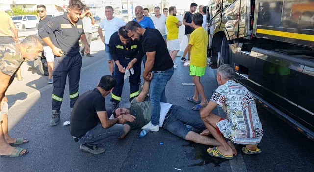 Antalya’da direksiyon başında kriz geçirerek bayılan tır sürücüsü yaklaşık 800 metre çelik bariyerlere sürtünerek gittikten sonra yol kenarında duran minibüse çarptı. Tırdan çıkarılan ve epilepsi nöbeti geçirdiği düşünülen sürücüye ise vatandaşlar soğan ve kolonya koklattı, bacak ile kollarından tutup kalp masajı yaptı. Uzun süre sonra kendine gelen sürücü, olay yerine gelen ambulansa ilk başta binmek istemedi, ikna edilmesinin ardından kontrol amaçlı hastaneye götürüldü.