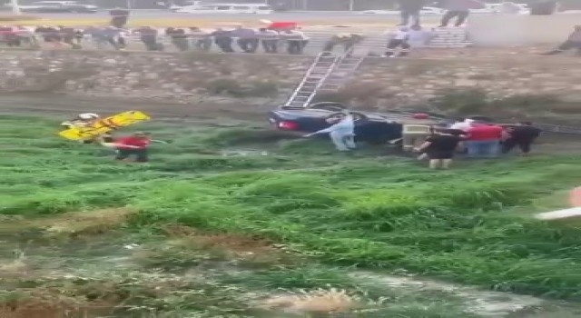 Bursa’da kontrolden çıkan otomobil dereye uçtu. Yaralı sürücü, itfaiye ekiplerince kurtarılarak hastaneye kaldırıldı.