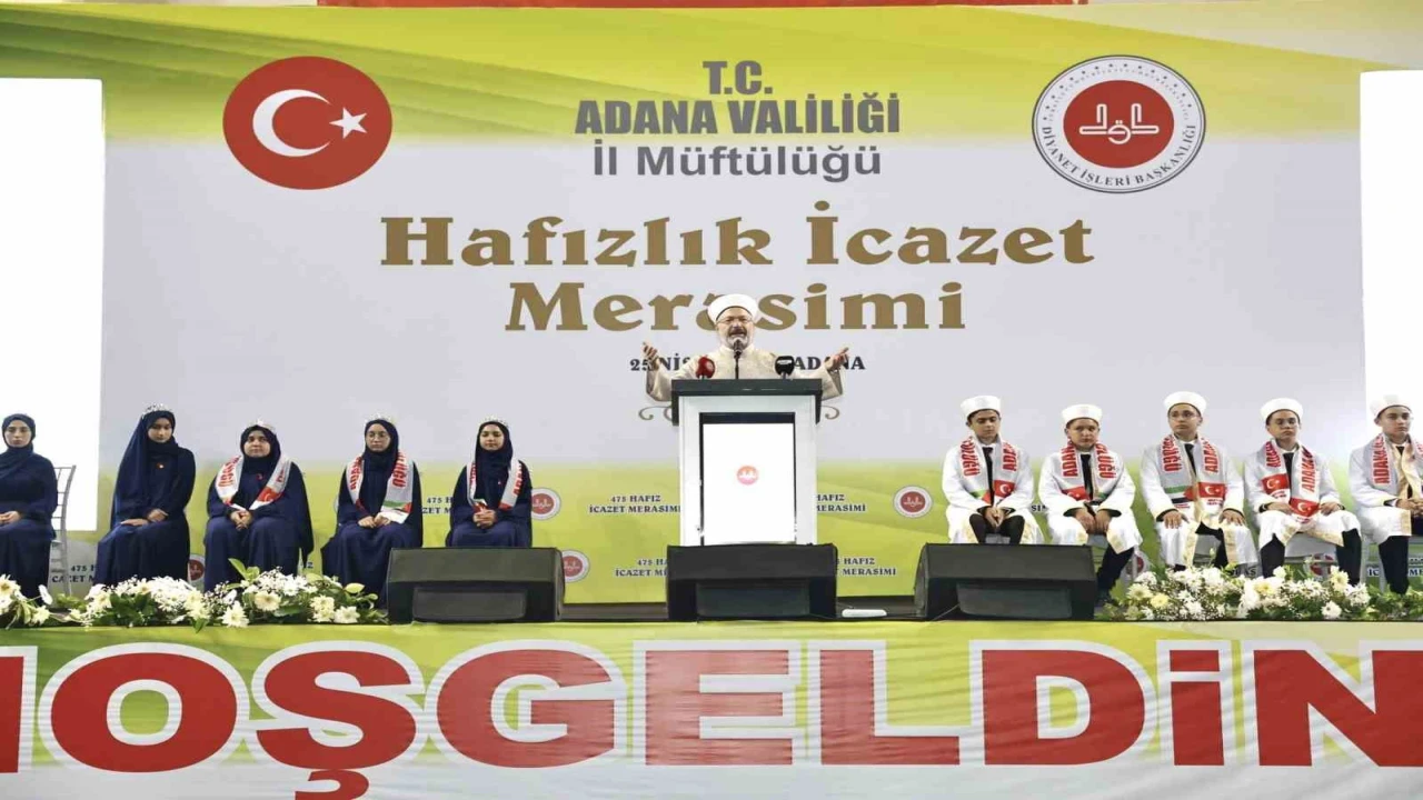 Adana’da Diyanet İşleri Başkanı Ali Erbaş’ın katıldığı merasimle 475 gence icazet belgesi verildi.