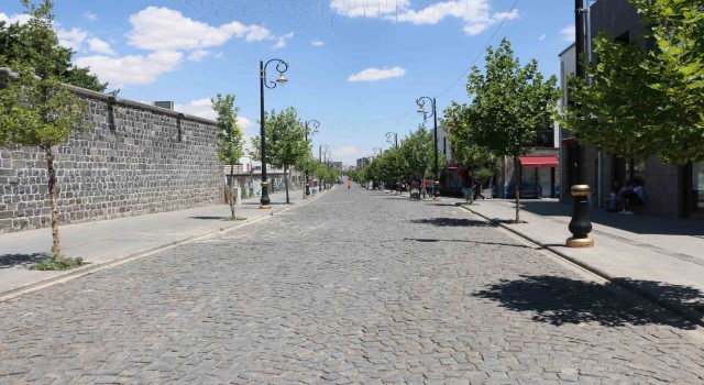 Diyarbakır’da termometreler 45 dereceyi gösterirken, artan hava sıcaklıkları nedeniyle kentin tarihi mekanları ve sokakları sessizliğe büründü.