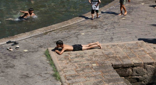 Kent genelinde kimi vatandaş gölgelik olan yerlerde kendini sıcak havadan muhafaza ederken, kimisi ise evinde bekleyip dışarı çıkmamayı tercih ediyor. Sıcaktan bunalan çocuklar ise, Sur ilçesindeki tarihi Anzele Suyuna girerek tehlikeye aldırış etmeden serinlemeye çalışıyor.
