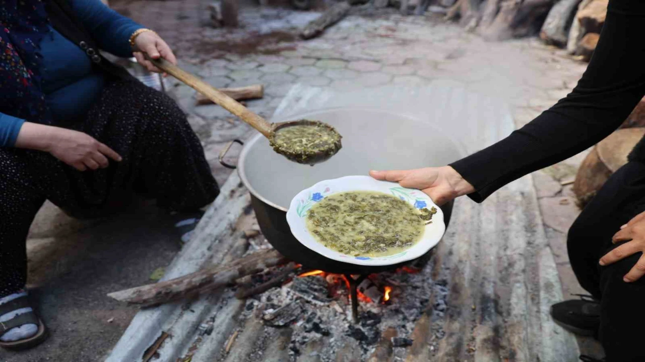 Adana’nın Kozan ilçesinde kadınlar, iftar sofraları için bahçelerden topladıkları yılan pancarı otunu imece usulü hazırlıyor. İncecik doğranan ot; yoğurt, nohut, yarma ve limonla karıştırılıp üzeri unla kapatılarak 24 saat bekletiliyor. Zehri alınan ot, ardından odun ateşinde kara kazanda yaklaşık 4 saat pişirilerek sofralarda yerini alıyor.