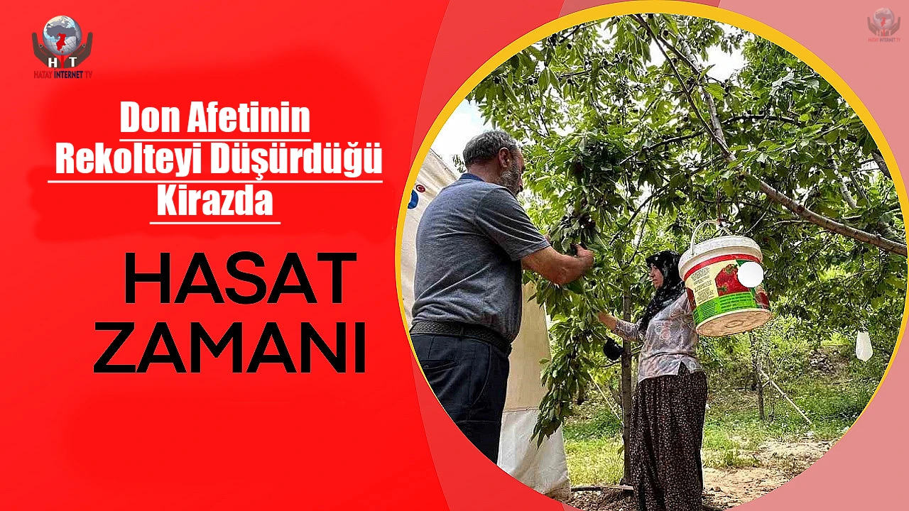 Hatay’da yaşanan don afetinden olumsuz etkilenen kirazda hasat başladı. Rekoltenin geçtiğimiz yıllara göre düşük olduğu kiraz bahçeden 100 TL’den alıcı buluyor.