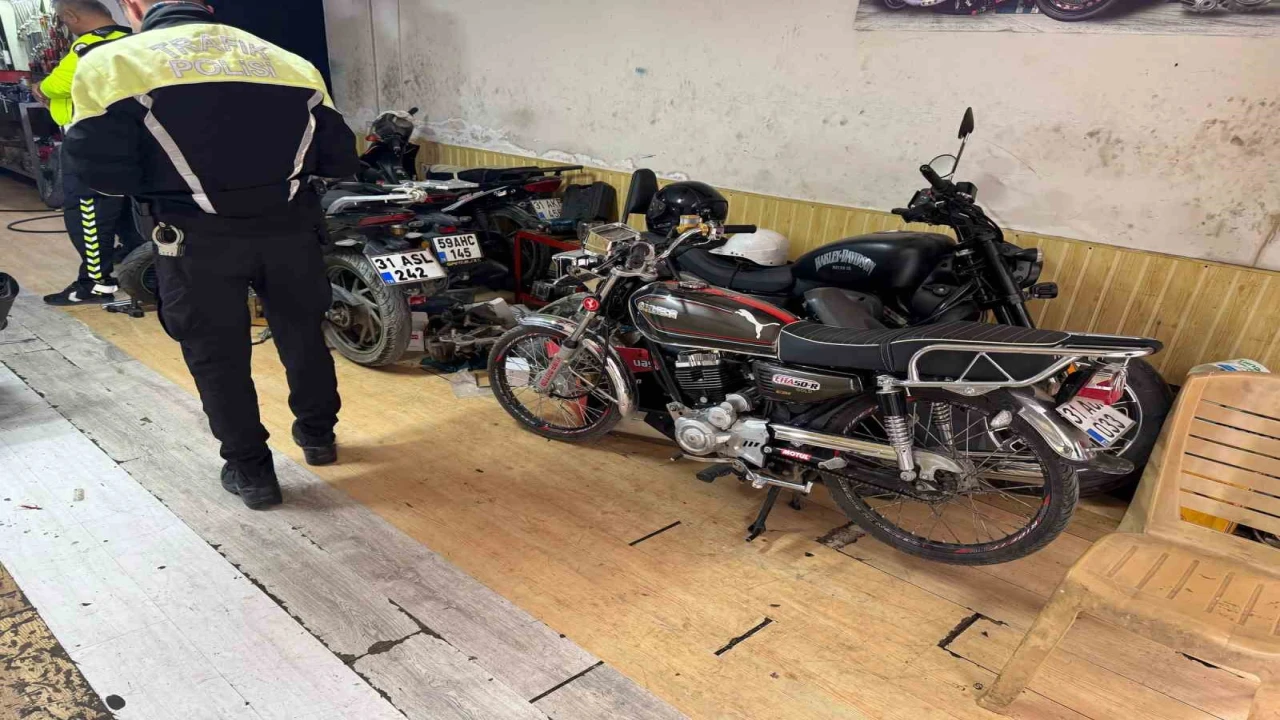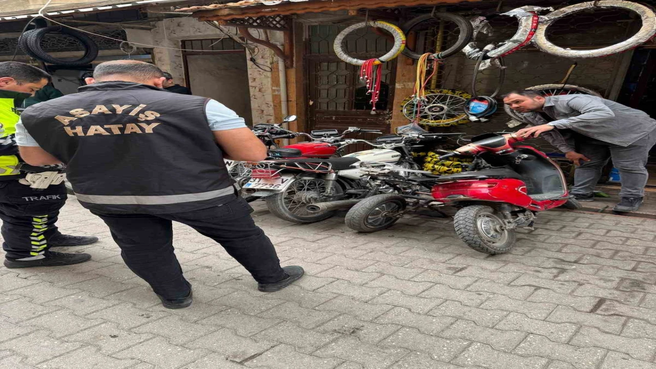 Hatay’ın Dörtyol ilçesinde Emniyet Müdürlüğü görevlilerince motosiklet tamircilerine yönelik denetim yapıldı, işyerlerinde bulunan 62 motosiklet kontrol edildi.