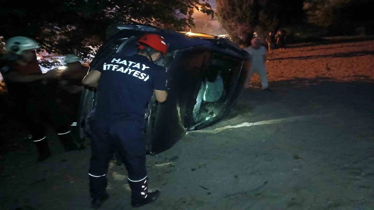 Hatay’da takla atarak yan dönen otomobilin sürücüsü yaralandı.
