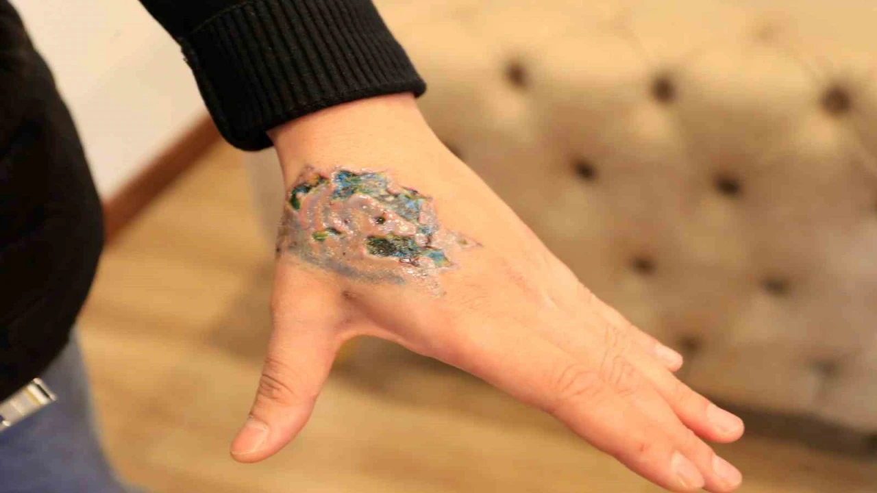 BİR GÜZELLİK MERKEZİNDE ELİNDEKİ DÖVMEYİ SİLDİRMEK İSTEYEN YASİN TAŞ’IN SOL ELİNDE HATALI UYGULAMA NEDENİYLE İKİNCİ DERECE YANIK OLUŞTU. DURUMU ANLATTIĞI GÜZELLİK MERKEZİ GÖREVLİLERİ İSE TAŞ’A “ÇOK AĞRIN VARSA, ECZANEDEN AĞRI KESİCİ AL” ÖNERİSİNDE BULUNDU.