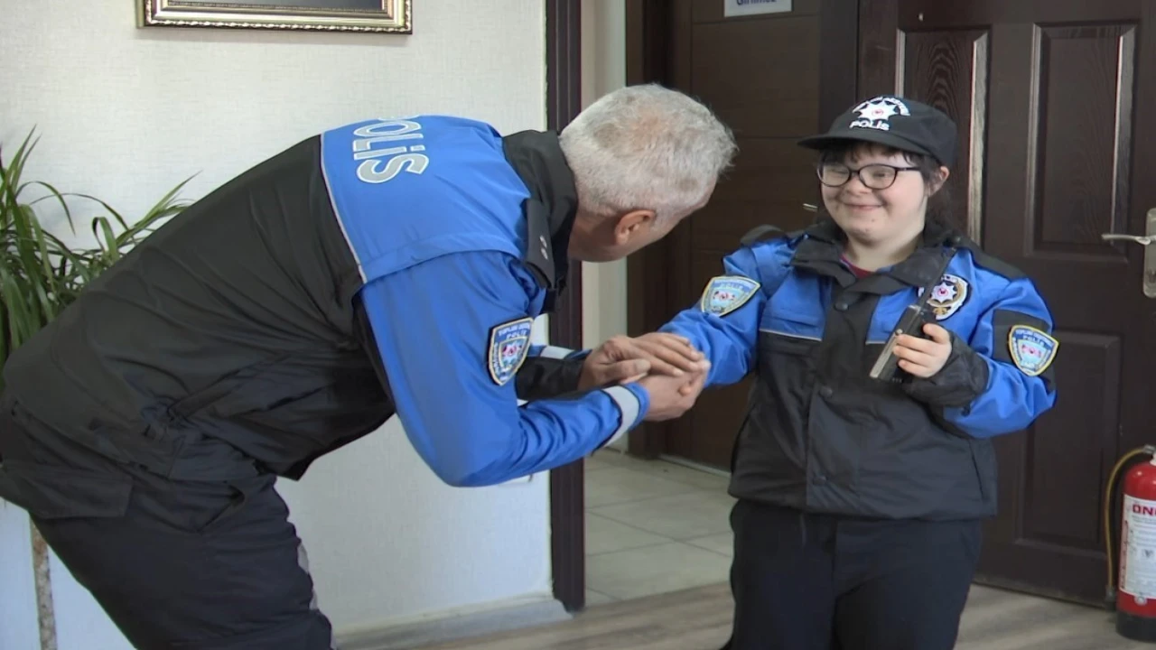 Mersin’de Down sendromlu 18 yaşındaki İnzile Çetintaş’ın polis olma hayali gerçekleşti. Polis aracıyla evden alınarak polis kıyafetleri giyen İnzile’nin heyecan dolu anları herkesi mutlu etti.