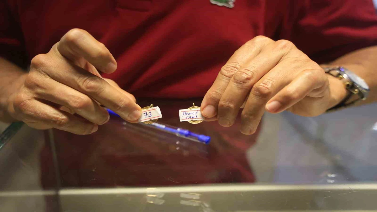 HATAY’DA SARRAFLIK YAPAN AHMET GÜNEY, EVLENECEK ÇİFTLERİN DÜĞÜNLERİNDE TAKILAN ALTINLARI GELİR DÜZEYİNE GÖRE DEĞİŞKENLİK GÖSTEREREK ALTINLARIN KİMLERİN TAKTIĞINI BİLMELERİ İÇİN KÜÇÜK YAPIŞTIRICILARA İSİM VE NUMARA VERİLMESİ GEREKTİĞİNİ SÖYLEDİ.