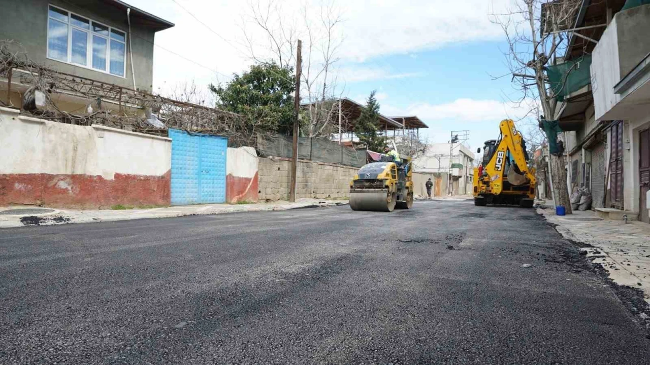 Kahramanmaraş Su ve Kanalizasyon İdaresi (KASKİ), Dulkadiroğlu Namık Kemal Mahallesi 49023 Sokakta altyapı imalatlarının ardından sıcak asfalt serimini de tamamlıyor.