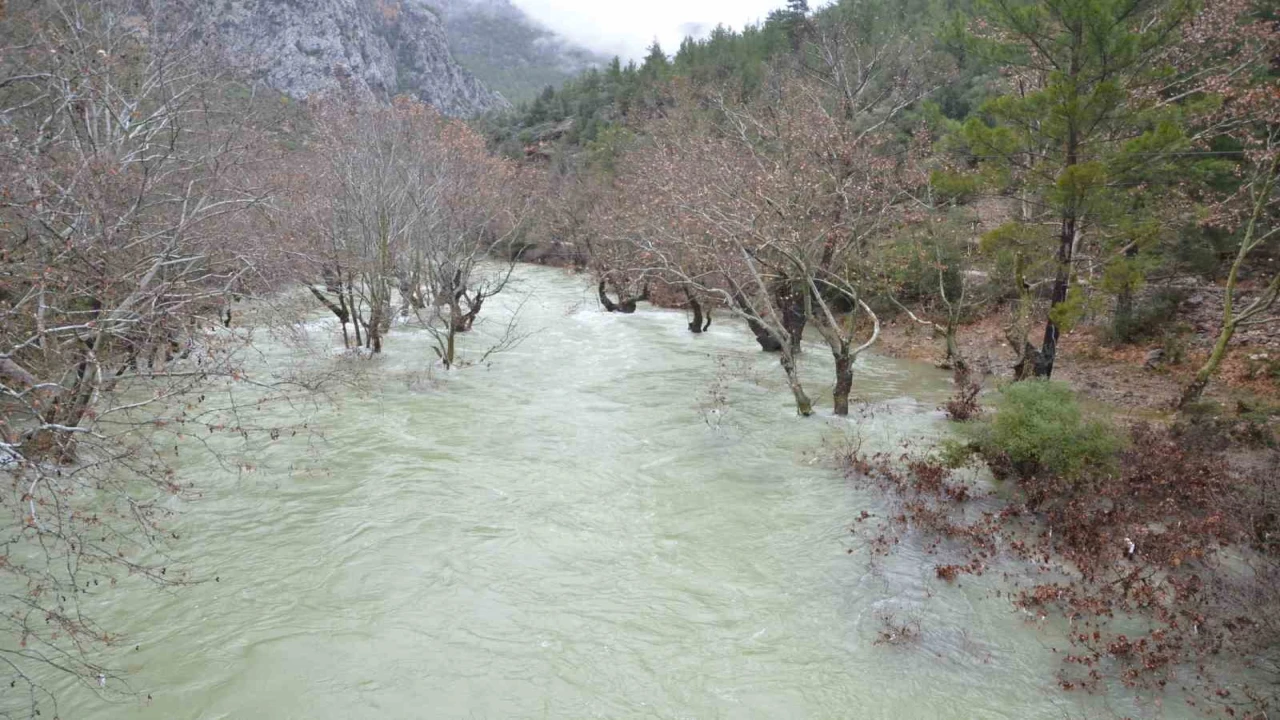 Antalya’nın yüksek kesimlerinde bulunan Akseki ve İbradı ilçelerinde etkili olan sağanak yağmurların ardından yer altı sularının yükselmesi ile birlikte dünyaca ünlü mağaranın su seviyesi yükselirken, suyun rengi de kahverengiye döndü. Kuraklık sebebiyle kuruyan Üzümdere Irmağı’nın yeniden suya kavuşmasıyla oluşan şelaleler ise görsel şölenler oluşturdu.
