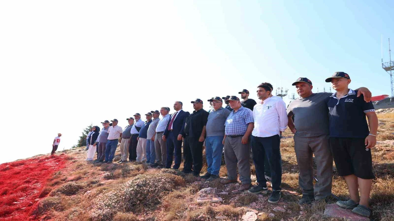 30 AĞUSTOS ZAFER BAYRAMI ETKİNLİKLERİ KAPSAMINDA KAHRAMANMARAŞ'TA ONİKİŞUBAT BELEDİYESİ TARAFINDAN AHIR DAĞI'NA YAPILAN DÜNYANIN EN BÜYÜK TÜRK BAYRAĞI, TÜRK HAVA KUVVETLERİ'NİN SAVAŞAN ŞAHİNLER FİLOSUNA AİT UÇAKLAR TARAFINDAN SELAMLAMA UÇUŞUYLA ONURLANDIRILDI