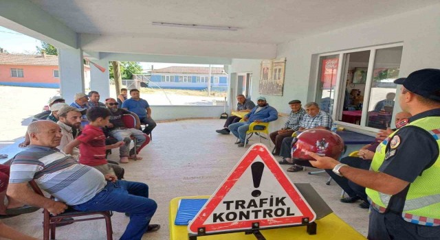 Edirne İl Jandarma Komutanlığı Trafik Jandarması Timleri tarafından Lalapaşa ilçesine bağlı Büyünlü köyünde ikamet eden vatandaşlara yönelik temel trafik kuralları, araçlara sigorta ve muayene yapılmasının önemine dikkat çekti.