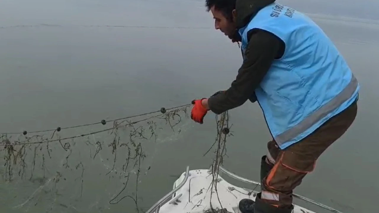 EĞİRDİR GÖLÜ’NDE SAZANGİLLER AV YASAĞI KAPSAMINDA YAPILAN DENETİMLERDE, KAÇAK AVCILIKTA KULLANILAN 500 METRE UZUNLUĞUNDA UZATMA AĞI ELE GEÇİRİLDİ. YAKALANAN AĞDAKİ BALIKLAR CANLI OLARAK GÖLE BIRAKILDI.