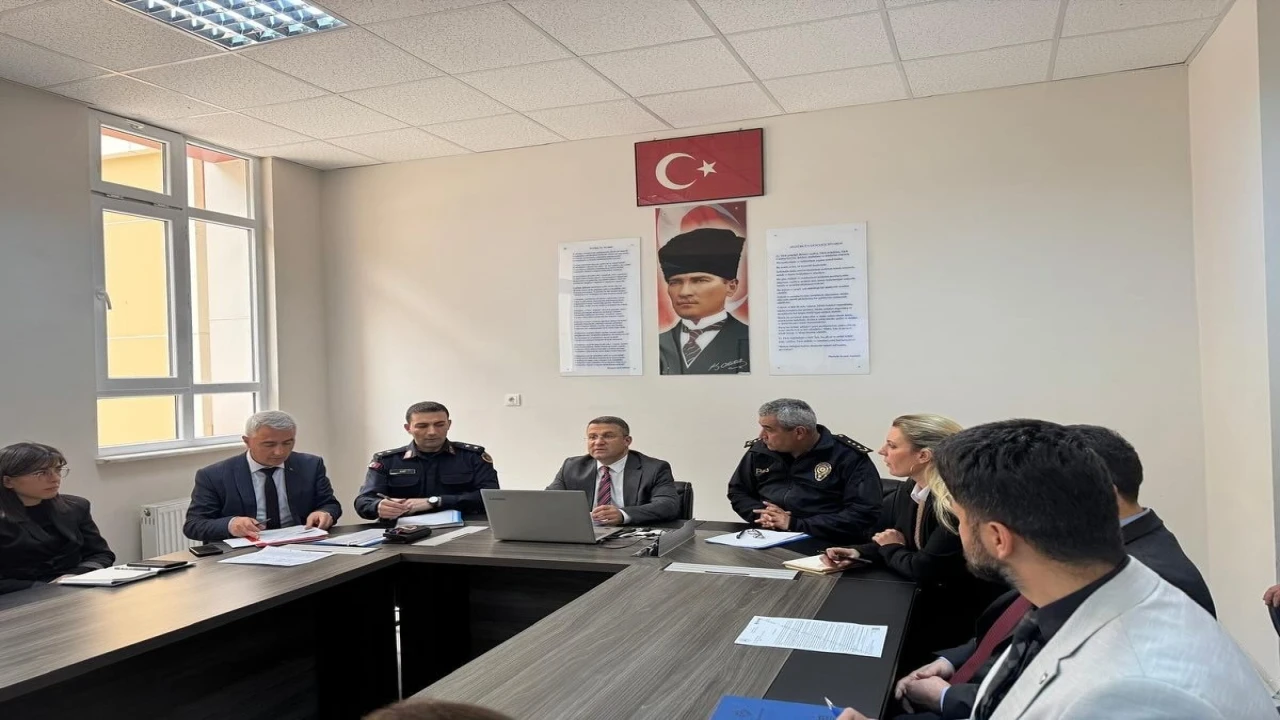 İlçe Kaymakamı Ömer Çimşit’in başkanlığında gerçekleşen toplantıya İlçe Emniyet Müdürü Levent Okyay, İlçe Jandarma Komutanı Erhan Ari, İlçe Millî Eğitim Müdürü Necdet Erol, kurum amirleri, ilçe şube müdürleri, okul yöneticileri, okul aile birliği başkanları ve öğrenci servis temsilcileri katıldı.