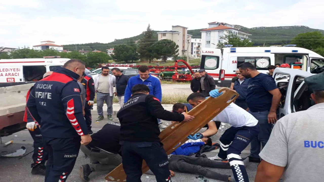 Kazada sürücü Mehmet E.Ö. ile araçta yolcu olarak bulunan Yakup D. (19) ve Mustafa G. (23) yaralandı. 112 Acil Çağrı Merkezine yapılan ihbar üzerine olay yerine sağlık, polis ve itfaiye ekipleri sevk edildi. Hurdaya dönen araçta sıkışan yaralılar, itfaiye ekiplerinin titiz çalışmasıyla araçtan çıkarıldı.