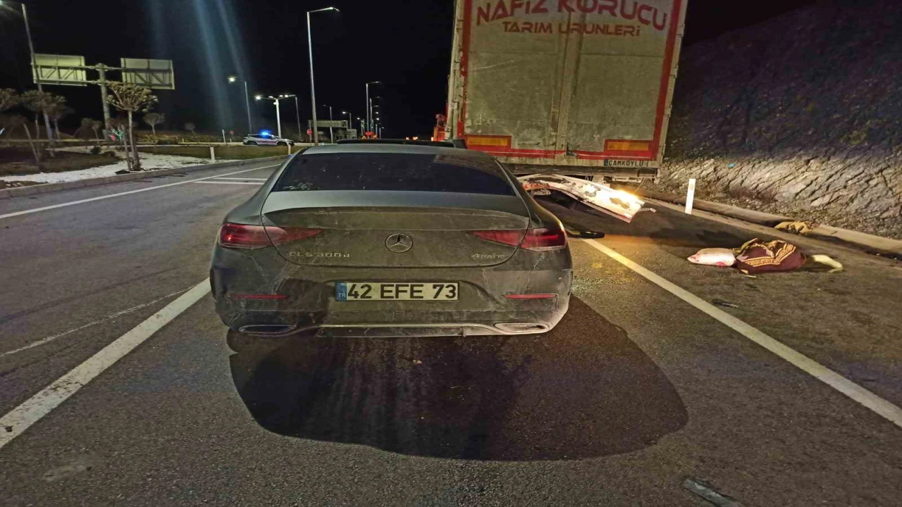 Konya-Antalya D-687 kara yolunda meydana gelen kazada, otomobil önce çekiciye çarptı, çekici üzerindeki minibüsü yola devirdi, ardından tıra arkadan çarptı. Kazada 1 kişi yaralanırken, sürücünün 4,80 promil alkollü ve ehliyetsiz olduğu belirlendi.
