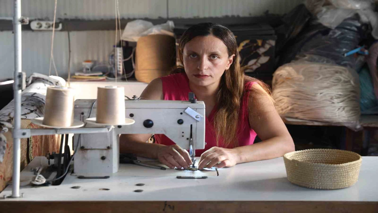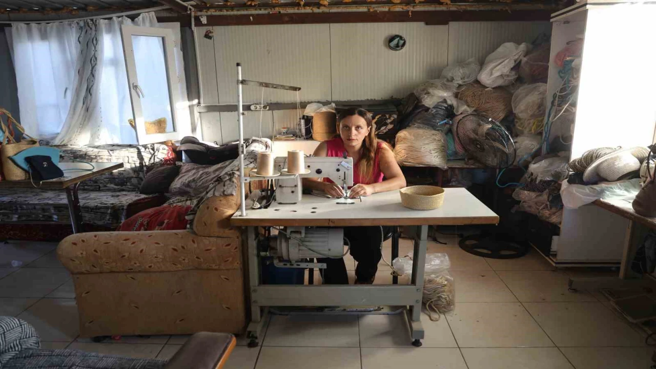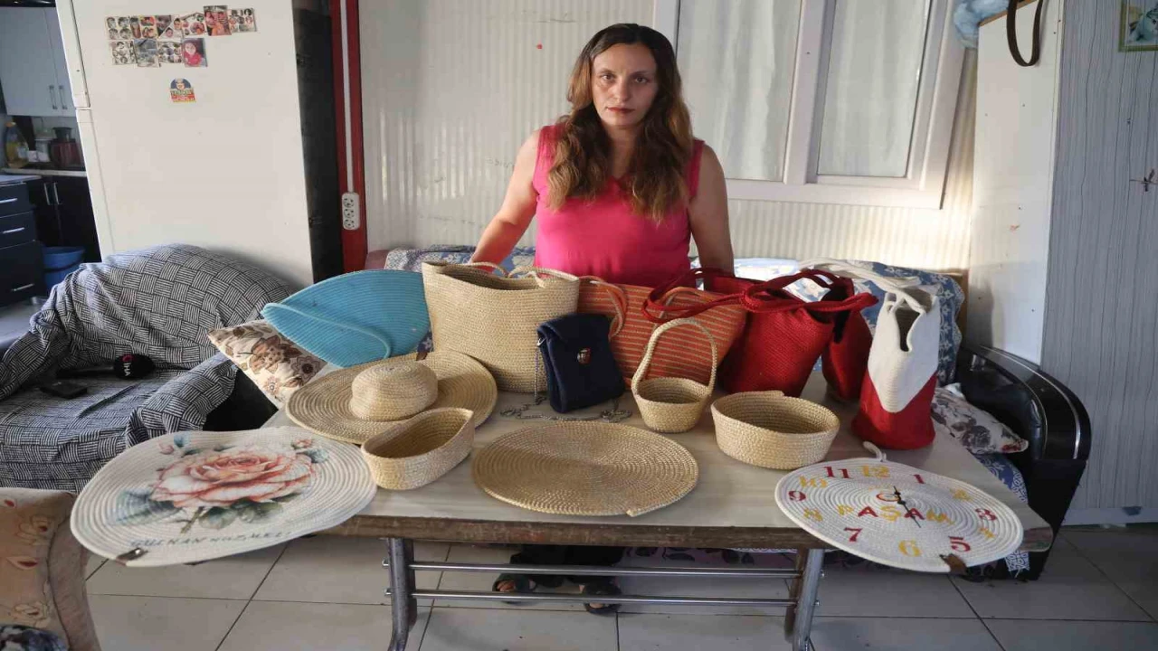 Defne ilçesi Subaşı Mahallesi’nde yaşayan 41 yaşındaki depremzede Gülhan Hüzmeli, hasta eşi ve 4 çocuğuyla birlikte konteyner yuvasında hayata tutunmaya çalışıyor. Depremden sonra eşi rahatsızlanan Hüzmeli, eşinin çalışamamasından dolayı kendi çalışmaya karar verdi. Depremden önce terzilik mesleğini yapan Hüzmeli, depremden sonra el işi öğrenmeye başladı. Kısa sürede öğrendiği el işinde kendini geliştiren Hüzmeli; çanta, supla, çamaşır sepeti, kase gibi el ürünleri yaparak ailesini geçindiriyor. Dikiş makinesiyle halatlardan el ürünü yapan Hüzmeli, 100 ila 300 TL arasında satıyor. Hüzmeli’nin ailesiyle birlikte yaşadığı konteyner, hem evi hem de işyeri oldu.
