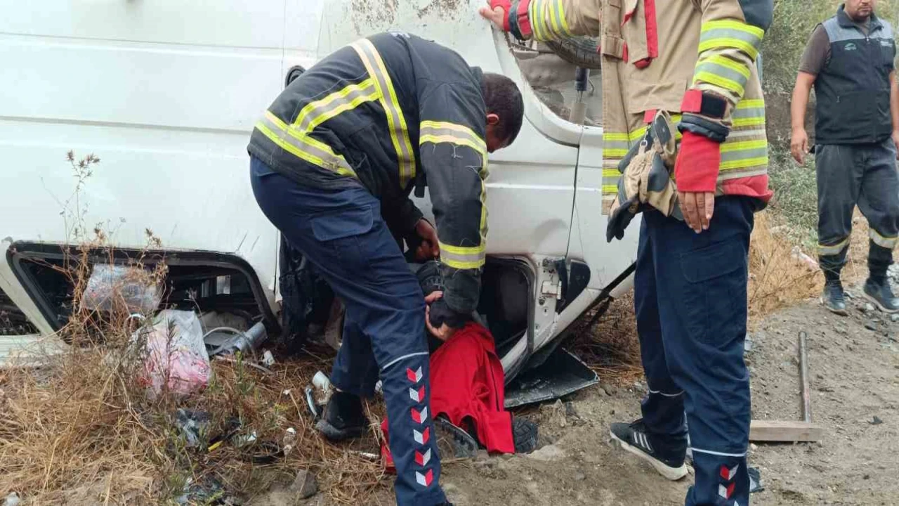 Elektrik direğine çarpıp ters dönen minibüste can pazarı yaşandı