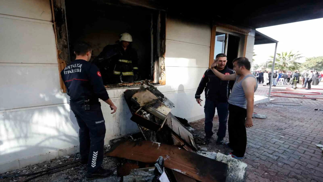 ANTALYA’DA BİR İKAMETTE ISITICIDAN ÇIKAN YANGINDA EV KÜLE DÖNDÜ. EV SAHİBİ GENÇ ZİYARETİNE GELEN ANNE-BABASINI SON ANDA DIŞARI ÇIKARTTI