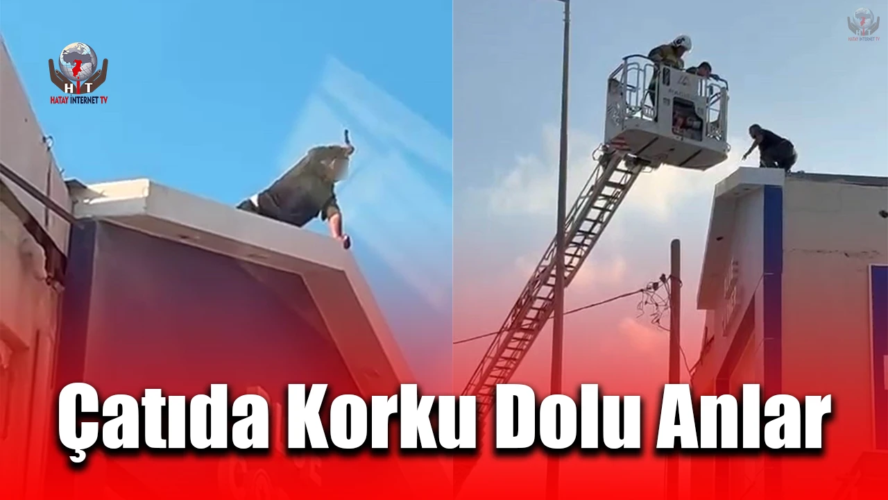 Olay, Antakya ilçesi İstiklal Caddesi'nde bulunan 2 katlı iş yerinde yaşandı. Cadde üzerinde bulunan iş yerinin çatısına çıkan ve elinde bıçak olan şahıs; kendine zarar vermeye başlayarak, intihar edeceğini söyledi. Elindeki bıçağı çevreye atacağını söyleyen kişi, korku dolu anlar yaşatırken o anlar kameraya yansıdı.
