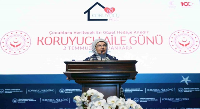 Koruma altındaki çocukların bakım şartlarının 2000’li yıllarda yetersiz olduğuna işaret eden Emine Erdoğan, "Aile ve Sosyal Hizmetler Bakanlığımız ile dünyadaki iyi örnekleri de değerlendirerek, çocuklarımızı koğuş tipi yurtlardan kurtardık ve sevgi merkezli evlere yerleştirdik. Bir çocuk için olabilecek en huzurlu ve güvenli ortamın, bir aile ortamı olduğu düşüncesiyle, koruyucu aile sistemini güçlendirdik. Yapılan çalışmalar ve Gönül Elçileri Projemiz neticesinde, koruyucu aile yanında bulunan çocuk sayımız 2002’den bu yana 515’ten,10 bin 256’ya yükseldi" diye konuştu.