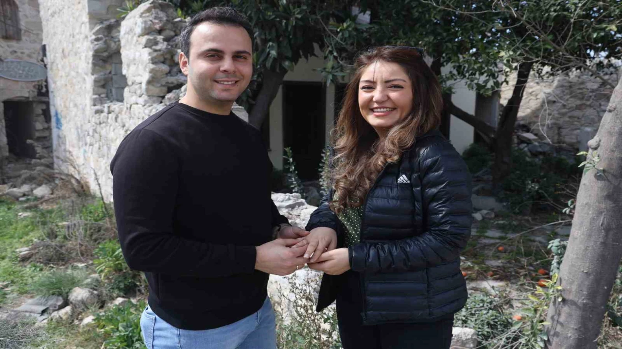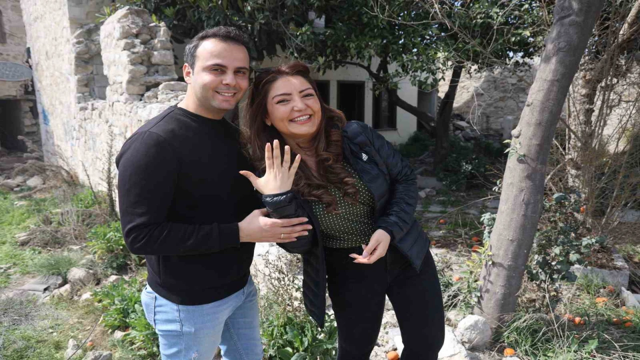 HATAY (İHA) - Hatay'da yaşayan Soner Köse, nişanlısı Özge Şabo'ya ilk tanıştıkları yer olan ve depremde yıkılarak enkaza dönen Antakya sokaklarında evlilik teklif etti.