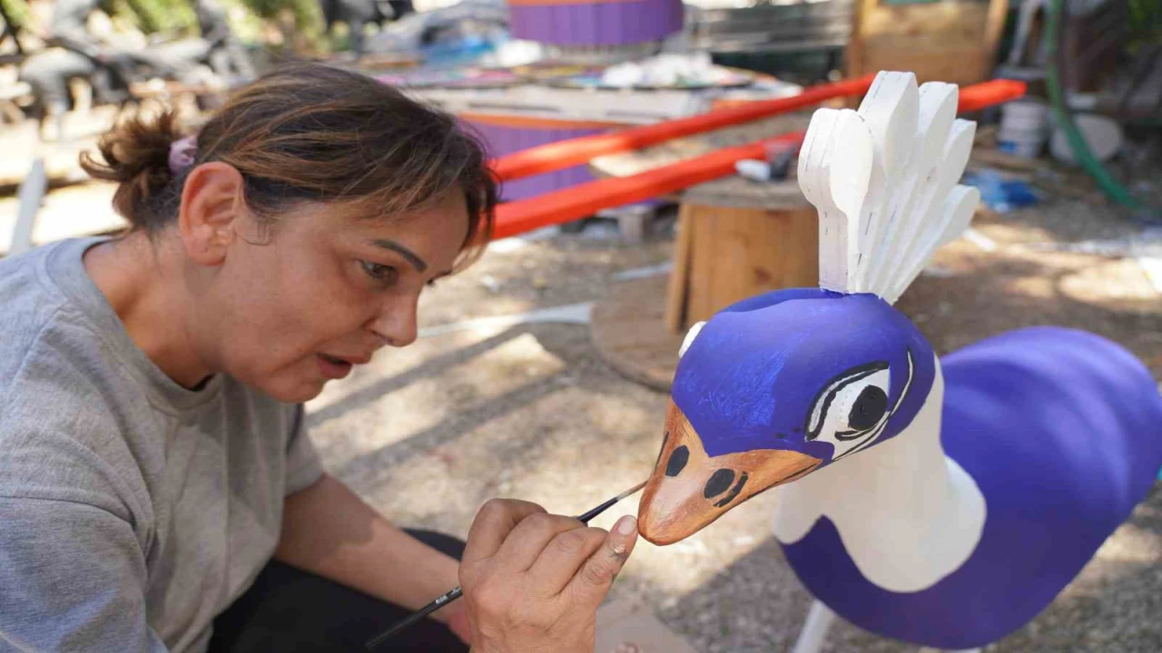 Erdemli Belediyesi Park ve Bahçeler Müdürlüğü ekipleri, kullanılmayan malzemeleri değerlendirerek birbirinden özgün eserler ortaya çıkarıyor. Okaliptus ve kavak ağaçları birleştirilerek yeni objeler oluşturulurken eski tabelalar sanatsal dokunuşlarla figürlere dönüşüyor. Kullanılmayan salıncaklar ve elektrikli tekerlekler faytonlara dönüşüyor. Ortaya çıkan bu eserler, kentin dört bir yanındaki park ve bahçelerde sergileniyor. Böylece hem çevre bilinci artırılıyor hem de kente estetik bir değer katılıyor.