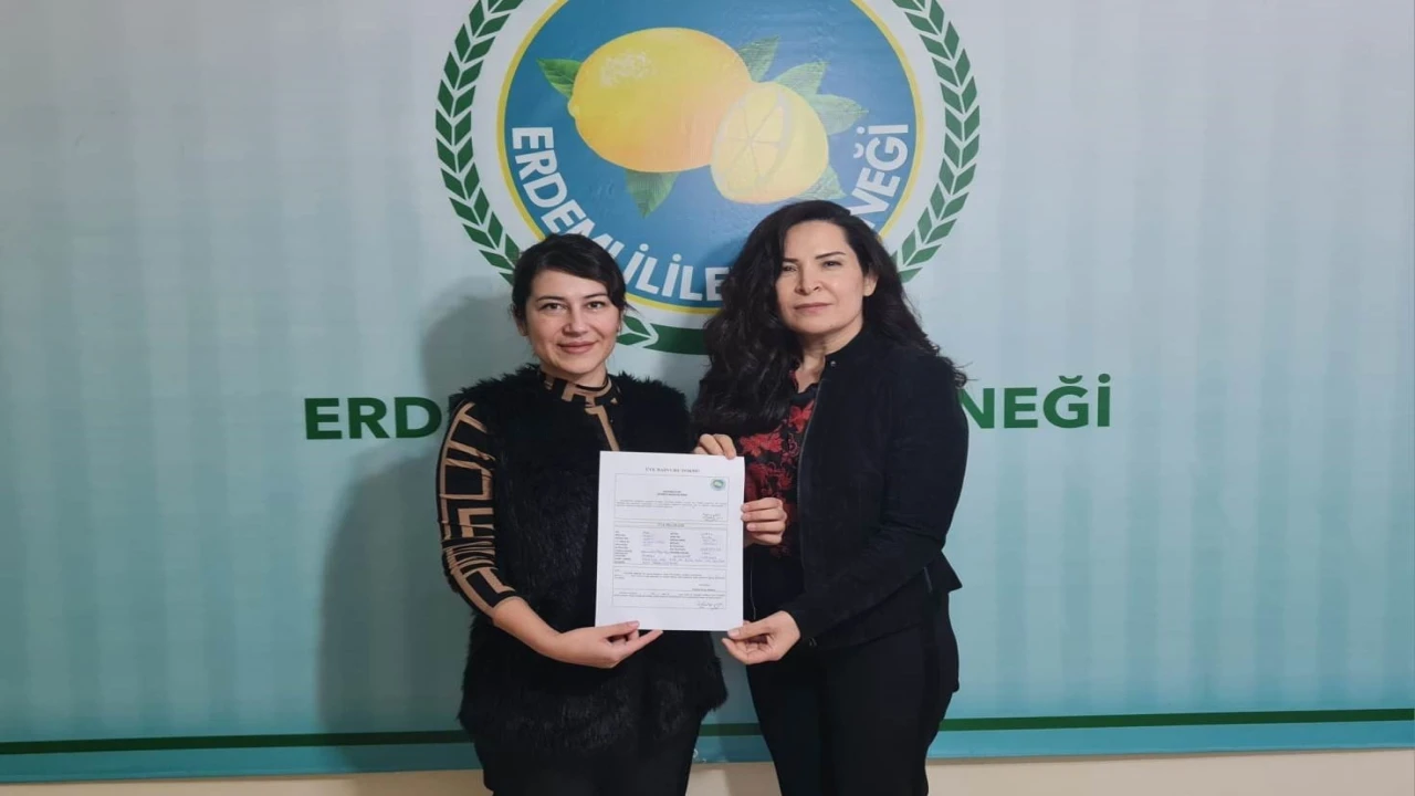 ERDEMLİLİLER DERNEĞİ, 5 ARALIK 1934 YILINDA KABUL EDİLEN KADINA SEÇME VE SEÇİLME HAKKININ VERİLİŞİNİN 90.YIL DÖNÜMÜNE EĞİTİMCİ AYŞE VURAL'IN (SOLDA) ÜYELİK BAŞVURUSUNU ONAYLAYARAK GİRDİ.