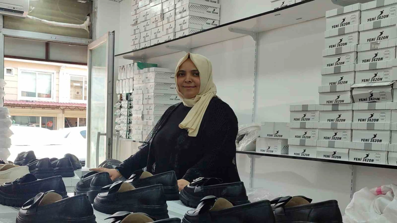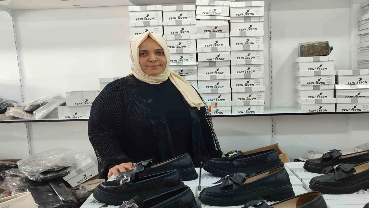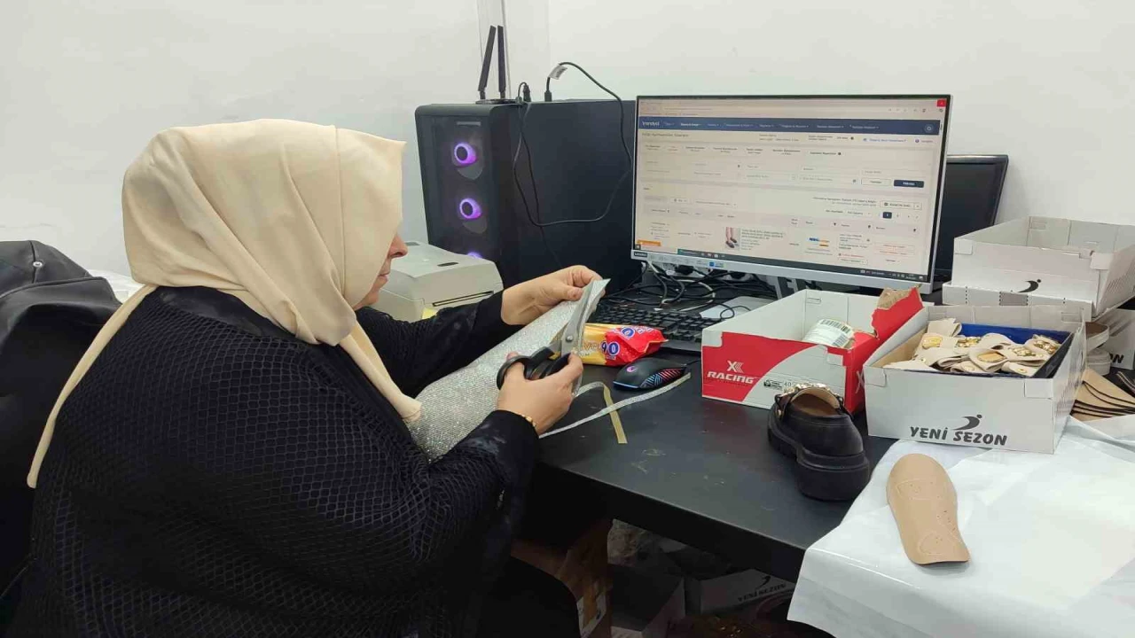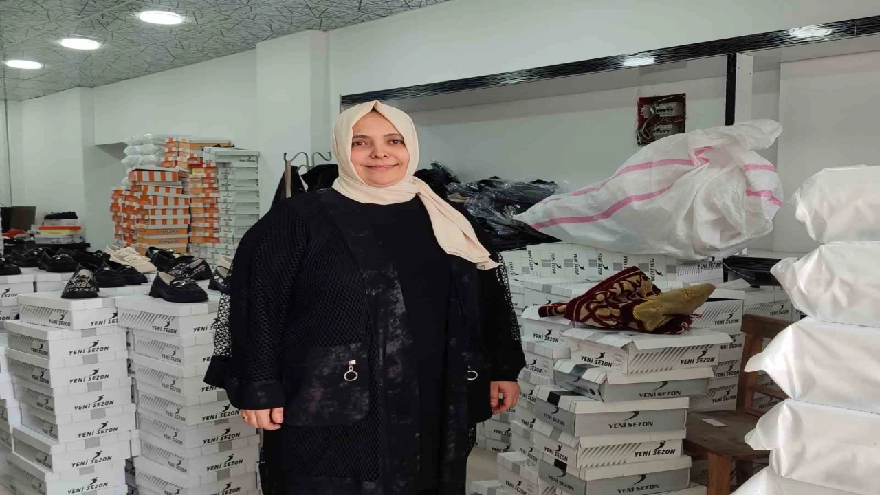 Kahramanmaraş’ta 2 çocuk annesi kadın, eşine destek amaçlı başladığı ayakkabı imalatında, kendi işinin patronu oldu.